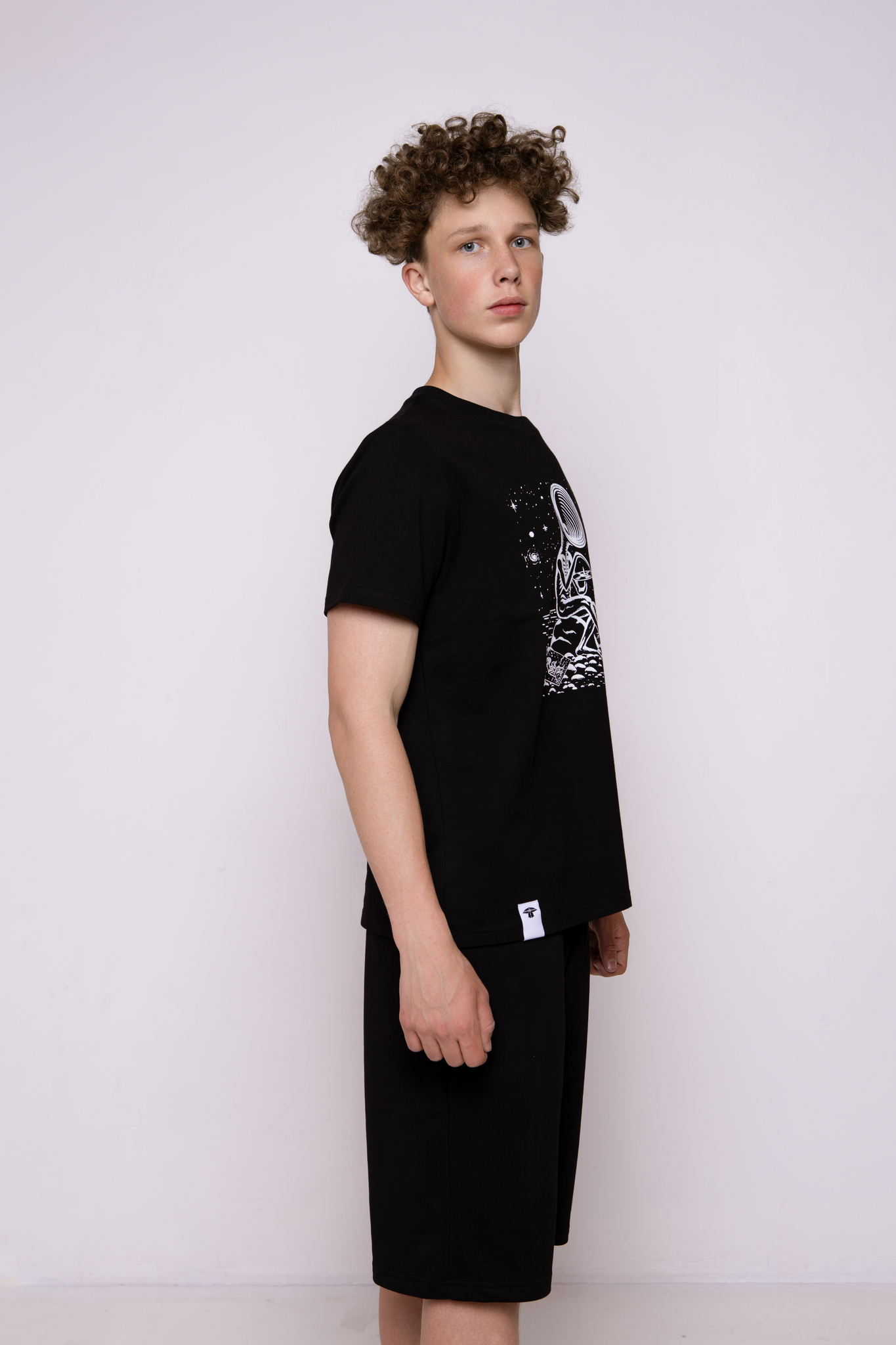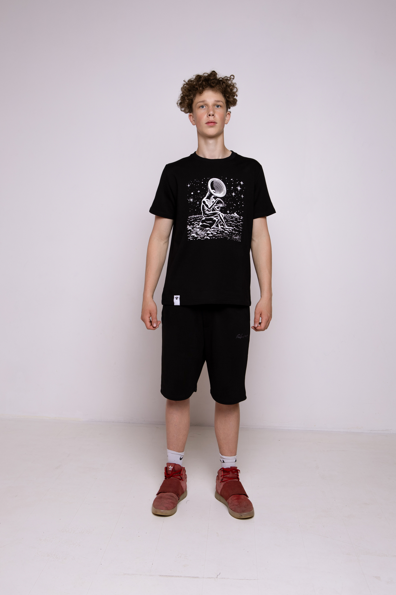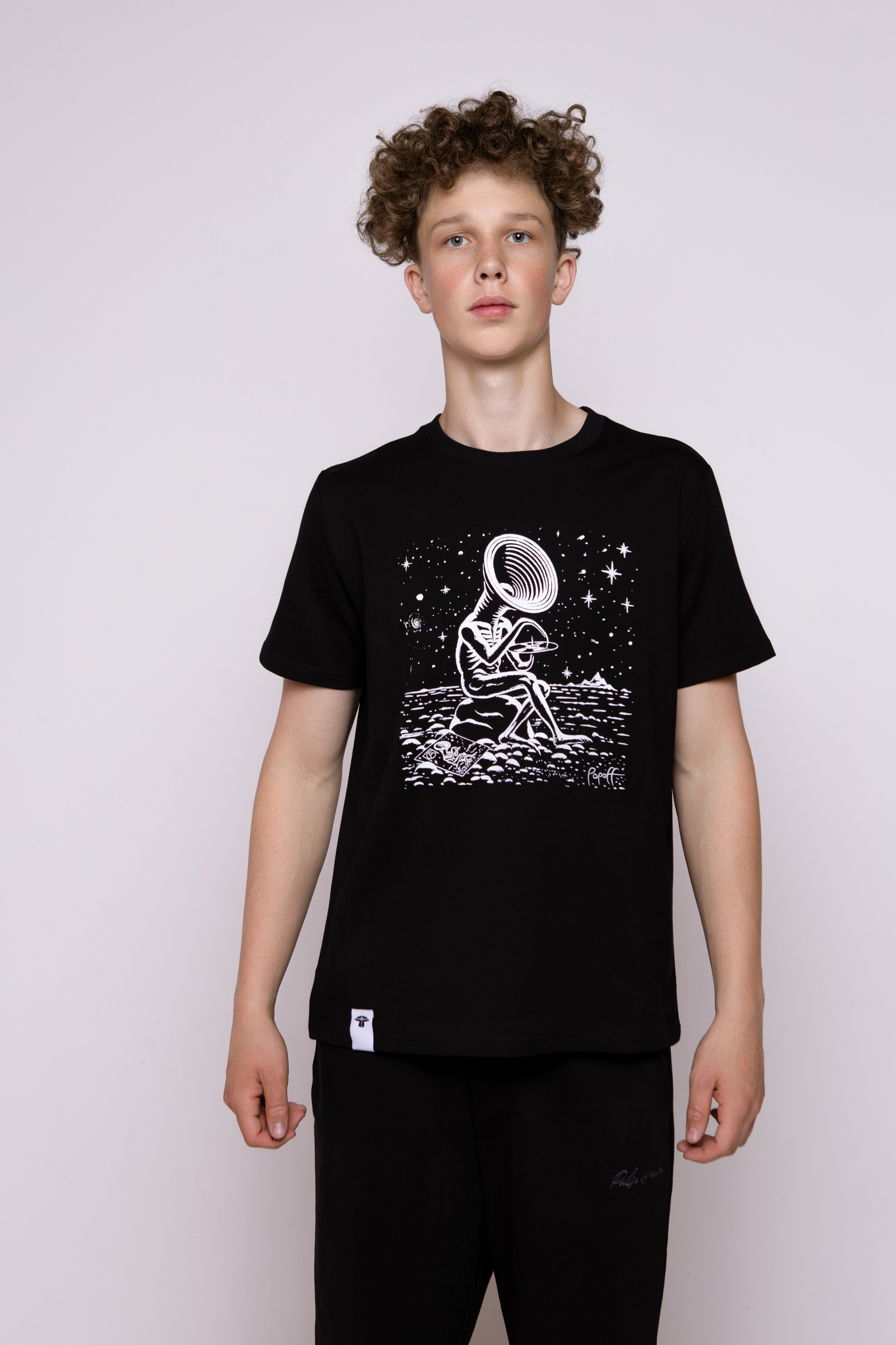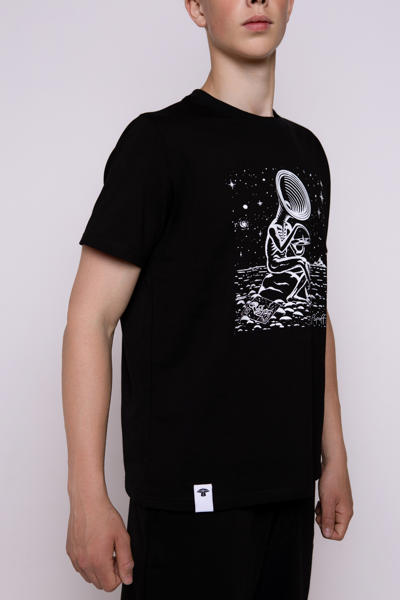 Футболка черная классическая с принтом «Pulse Of Rain»