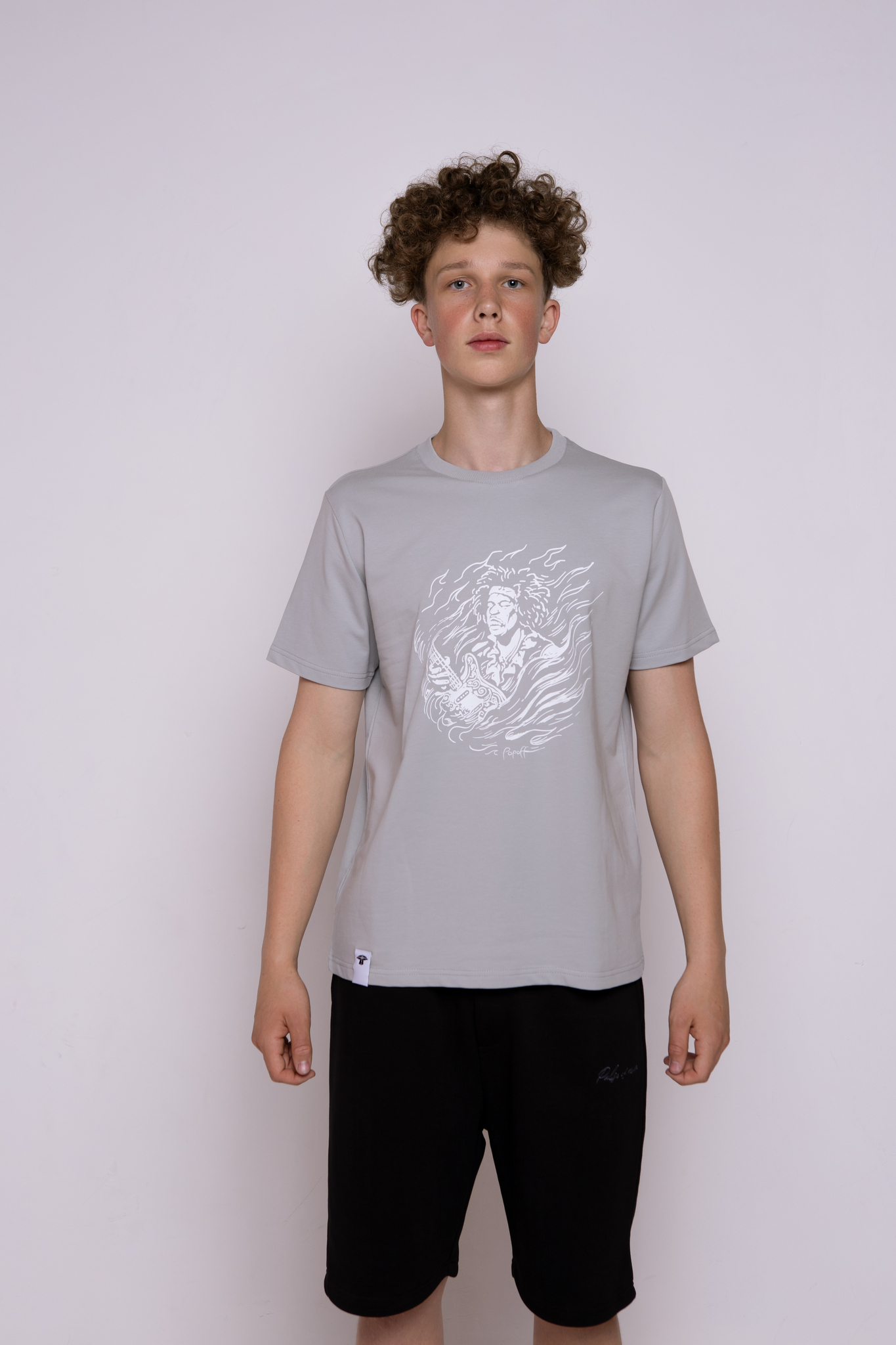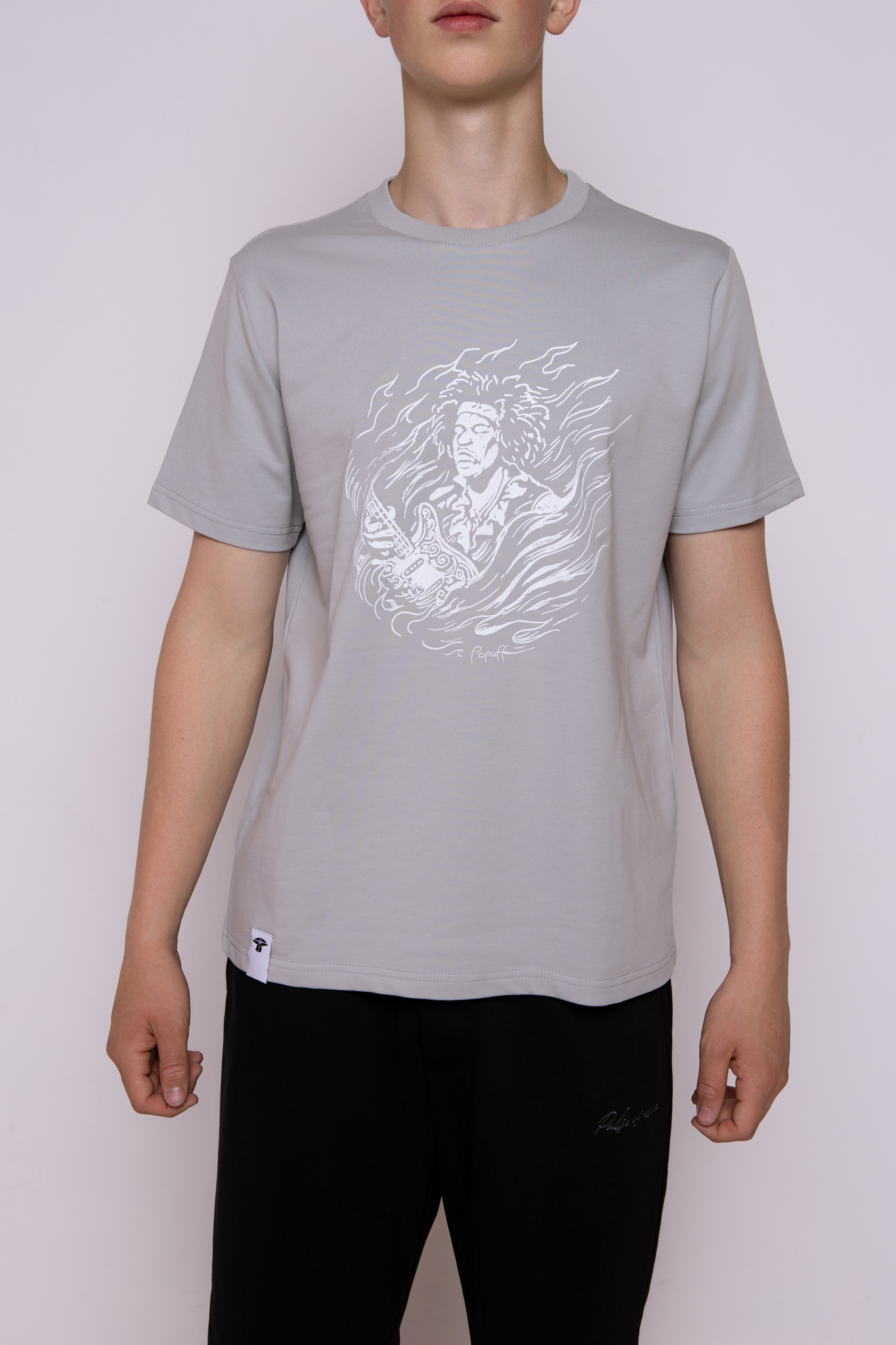 Футболка серо-голубая классическая с принтом "Jimi Hendrix. The guitarist"