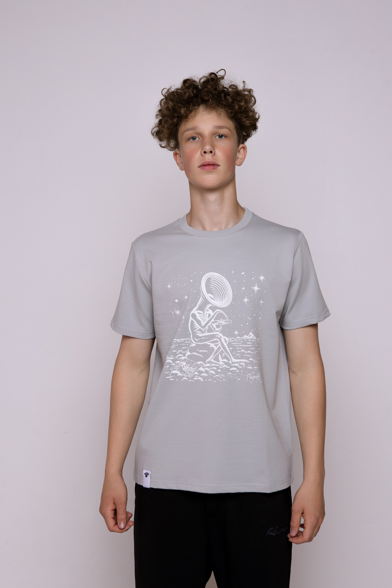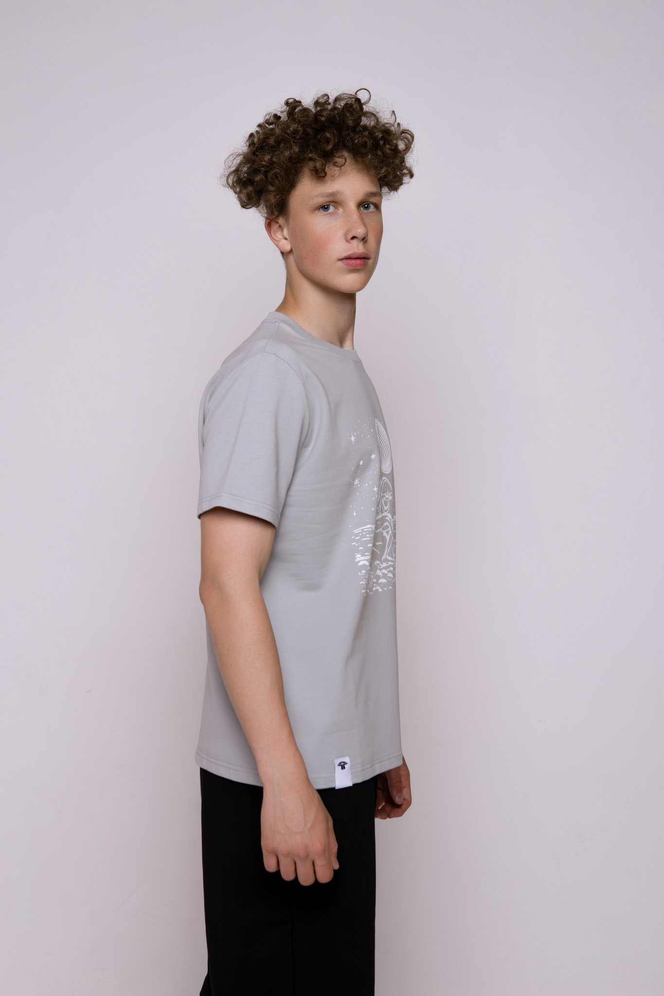 Футболка серо-голубая классическая с принтом "Pulse of Rain"