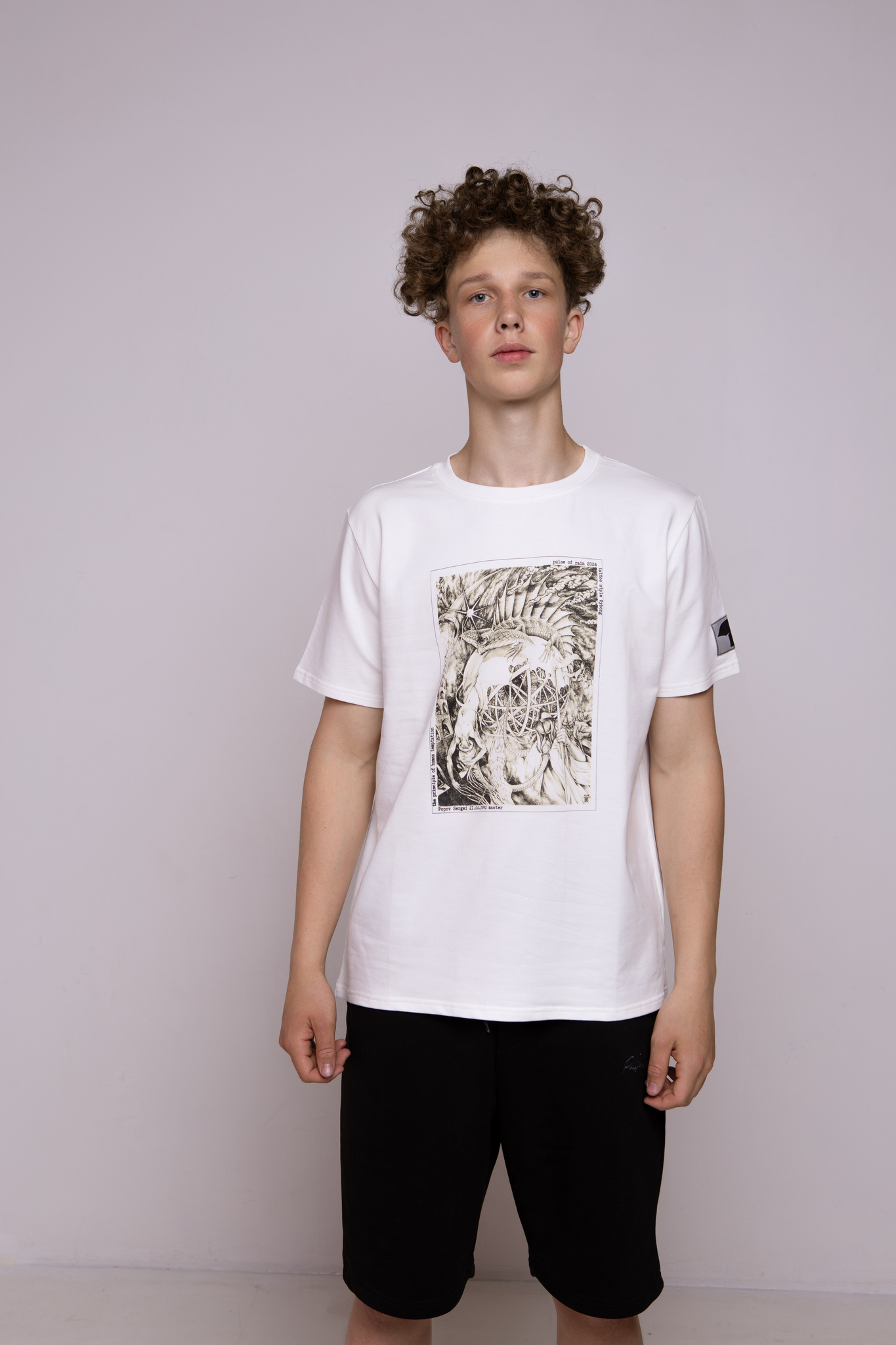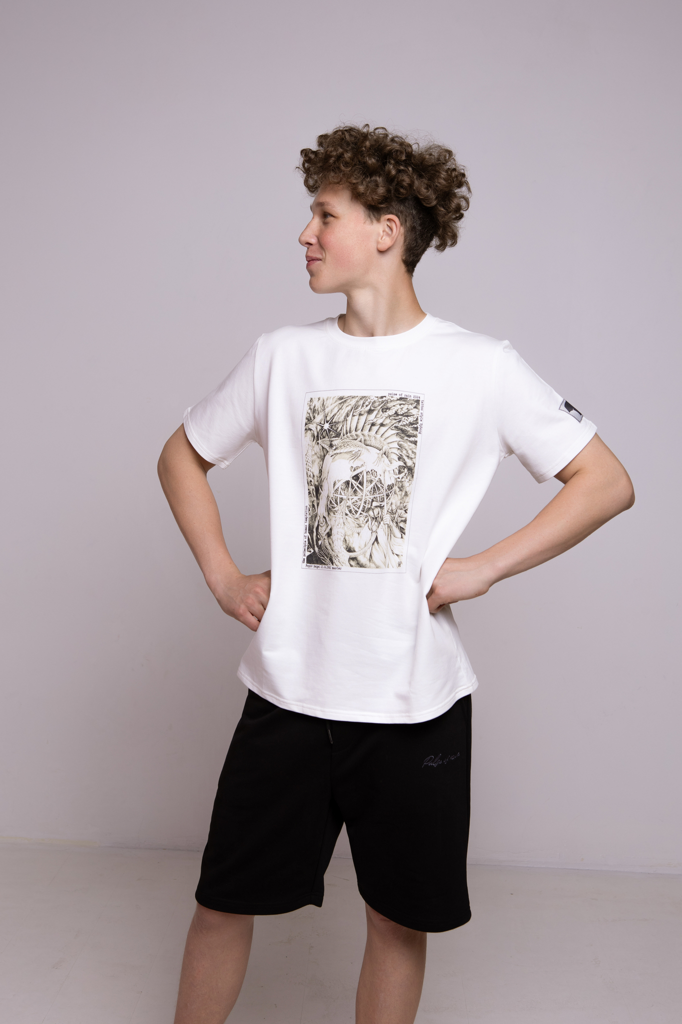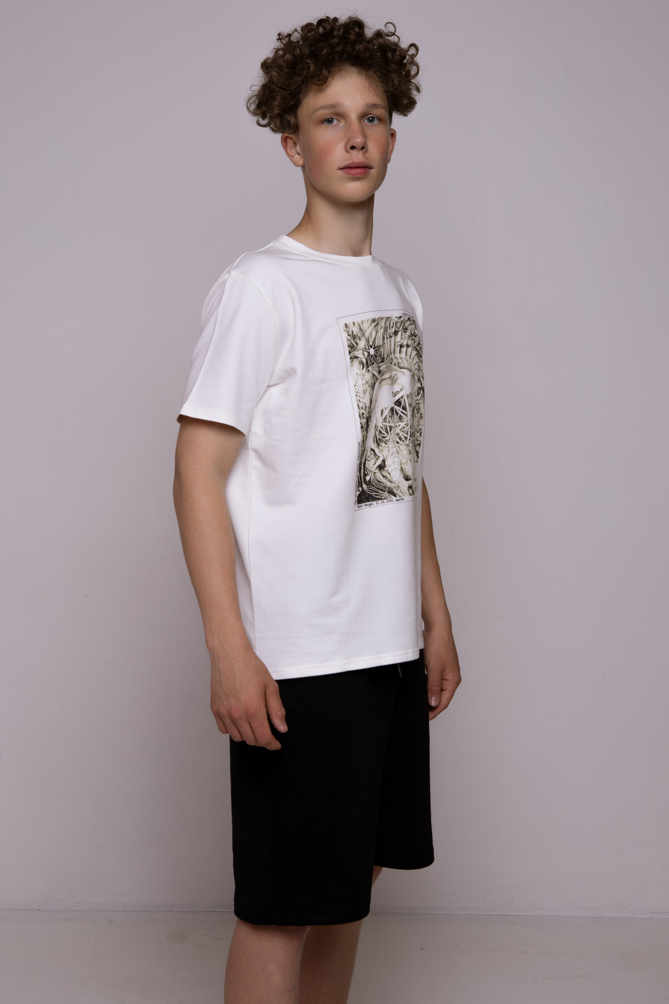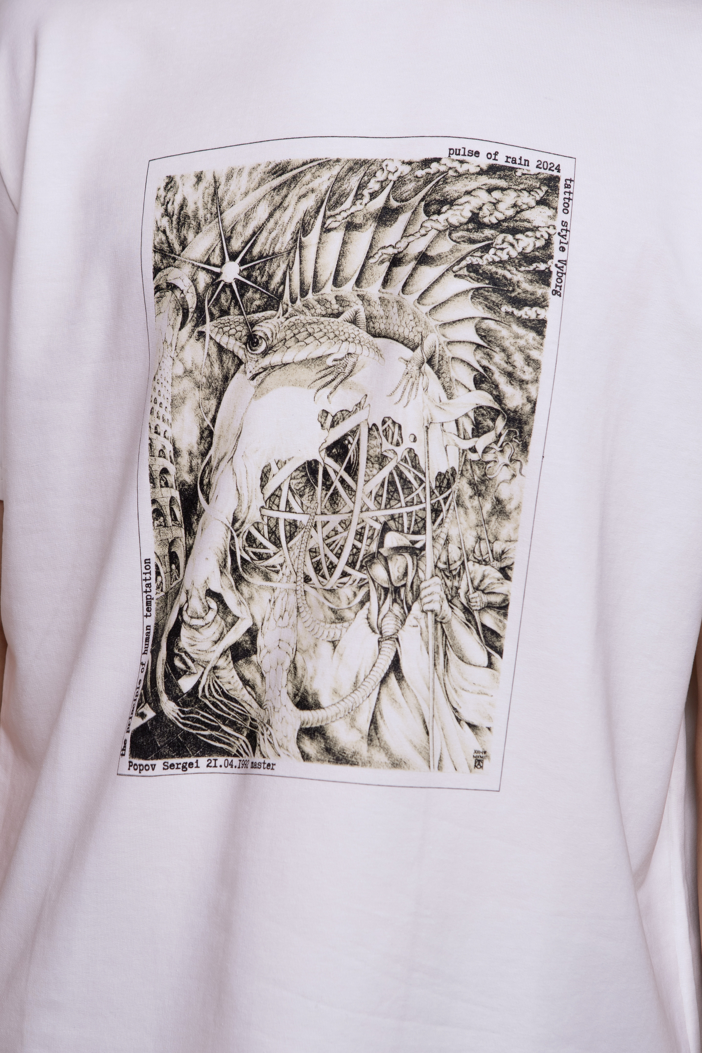 Футболка цвета экрю классическая с принтом "The Principles of human temptation"